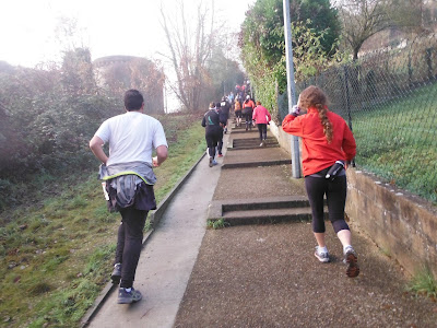 Fin de l'escalier et il reste je dirais 500 mètre, je les gravis tranquillement, puis on arrive sur 200 mètres de plat pour l'arrivée. Je sprint pour gagner quelques places.